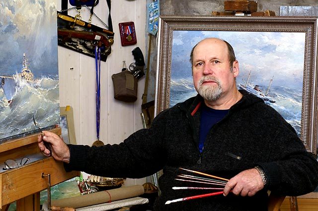 В юности его очаровали произведения великого мастера, когда он, рождённый вдали от моря, впервые попал на выставку картин в музее Ивана Айвазовского в Феодосии, это и определило в дальнейшем основную тематику его картин - море и корабли.