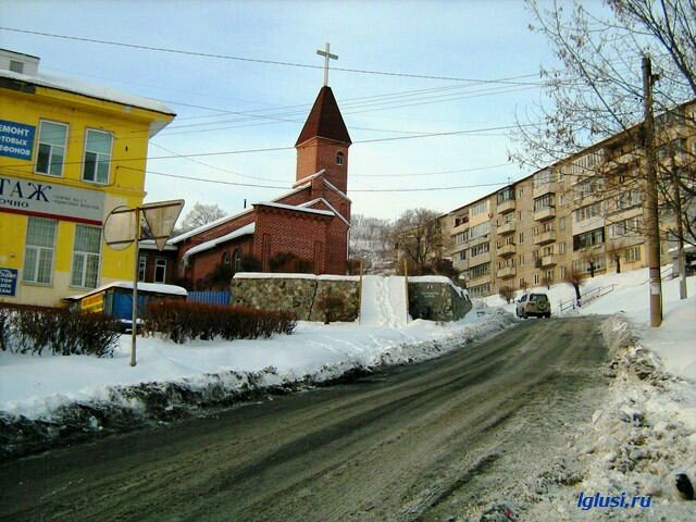 Католическая церковь, это уже на полпути от Ленинской к Тихоокеанской