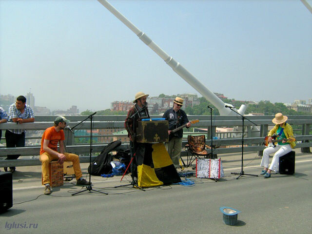 А на мосту появился Сергей Рыбалка и театр “Перекрёсток” со старой шарманкой и “красной шляпой синего цвета”, визитка города, кстати благодаря этим ребятам у Макаревича появилась знаменитая песня “Перекрёсток семи дорог…”