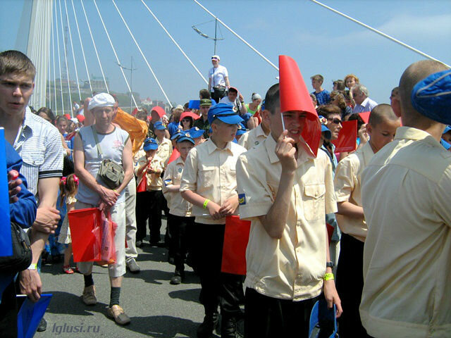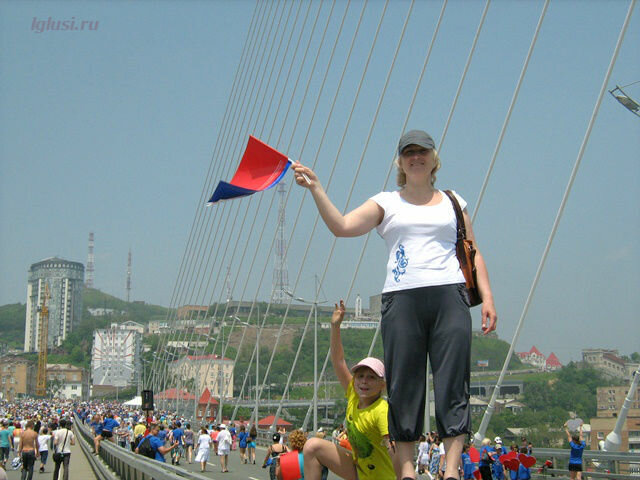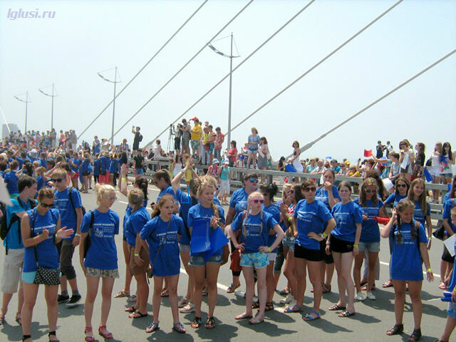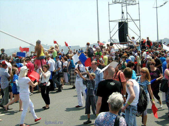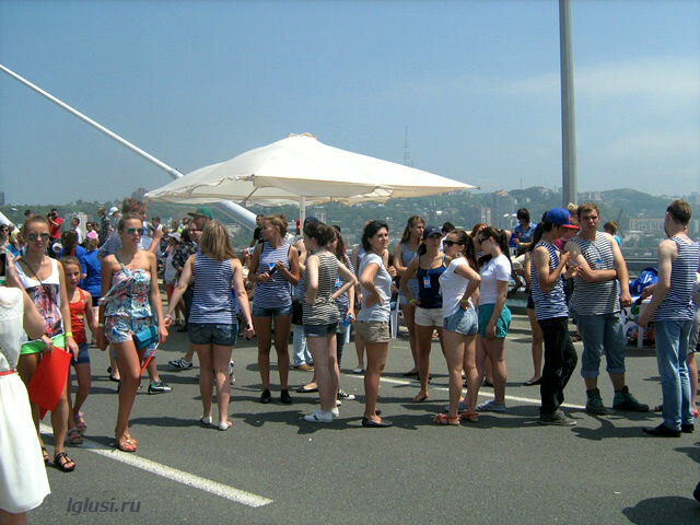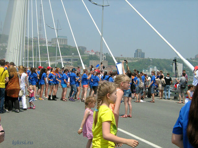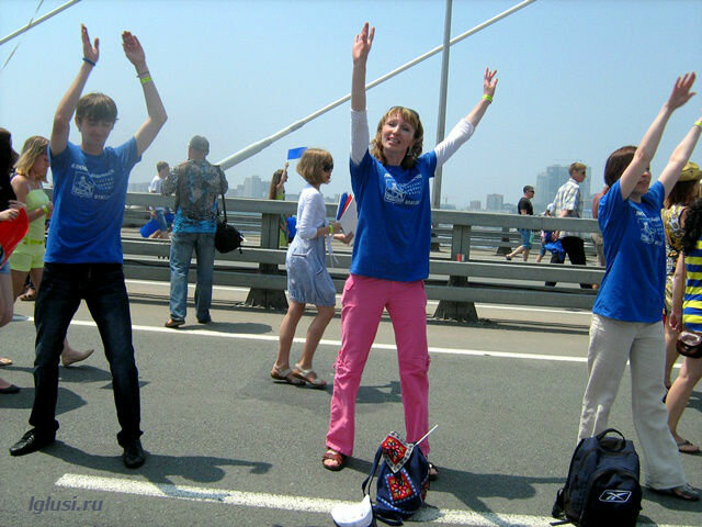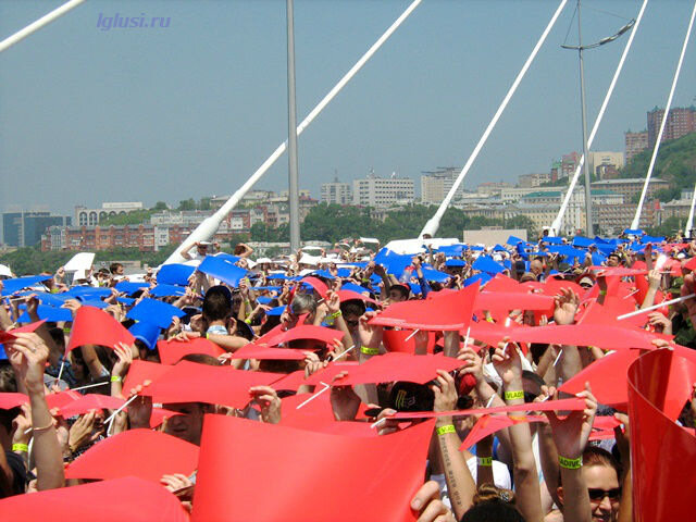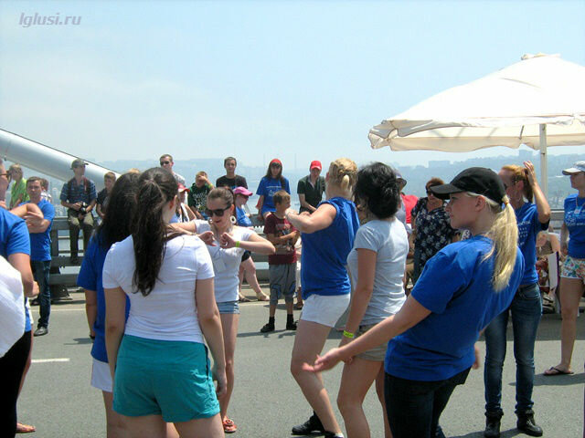 А на другой стороне моста шла репетиция флэшмоба, тоже вошедшего в книгу рекордов Гиннеса, как самая большая “живая фраза” танцующих людей ”Я люблю Владивосток”