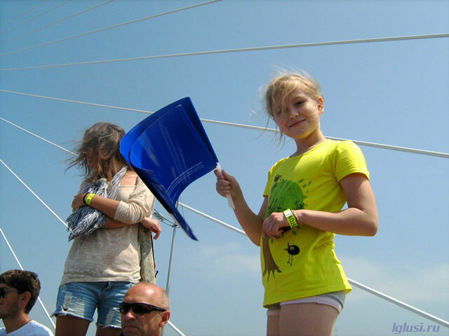 Мы же, обменяв два синих флажка на красный и белый, получили российский триколор и с ним ещё немного погуляли по нашему Золотому, его открывают для пешеходов только на праздники