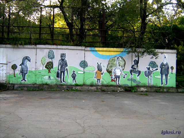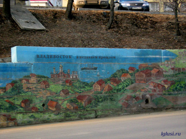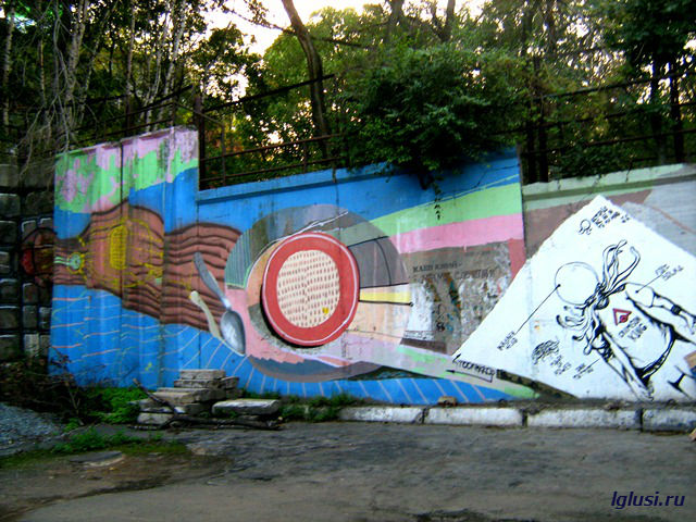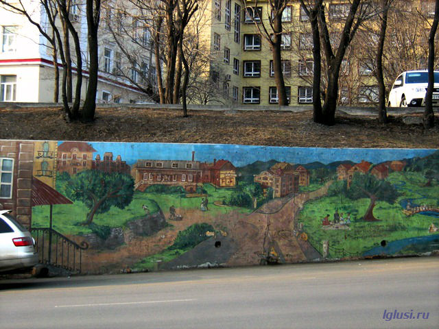А это из летней коллекции – рисунки на подпорных стенках возле детской больницы на Первой Речке