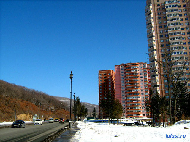 Продолжение фото-прогулки по Владивостоку начнём с микрорайона Снеговая падь, который вырос совсем недавно в распадке сопок, обычная в наше время архитектура, но на фоне сопок смотрится очень неплохо