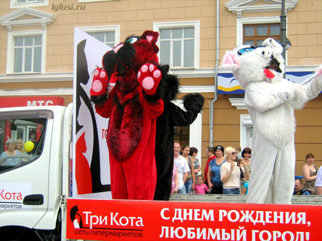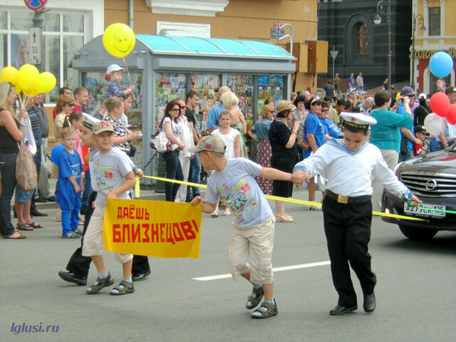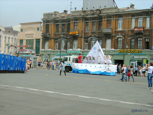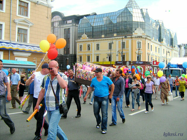 Вот это размах!! Даже более праздничный, чем первомайская демонстрация! И такой креатив с диванчиком, с живыми скульптурами,с близнецами и прочими идеями!… Вы просто молодец, Людмила, что делаете такие репортажи! Это так интересно — узнавать, как живут другие города! Спасибо!