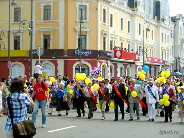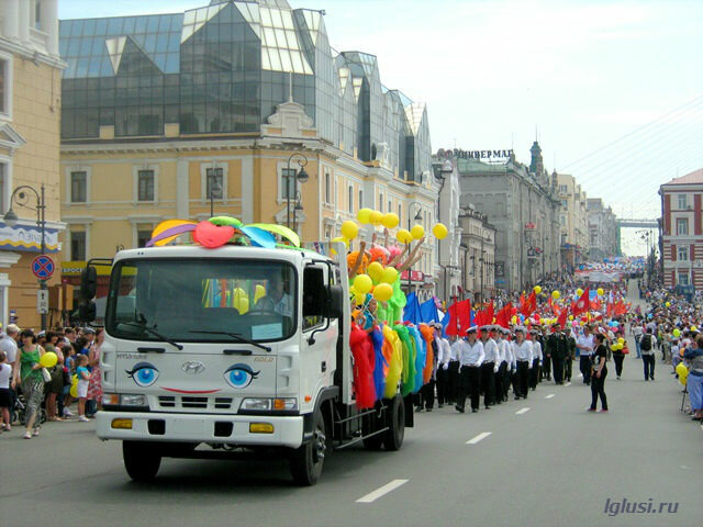 Замечательный фоторепортаж! Во Владивостоке умеют праздновать. Шествие напомнило старое, доброе время во времена Советского Союза! Странно но традиции возрождаются.