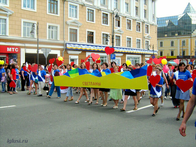 67 Светлан прошли в колонне, собирались вроде больше, а прогулять по улицами в старинных платьях было бы здорово, вечером по набережной, красота!