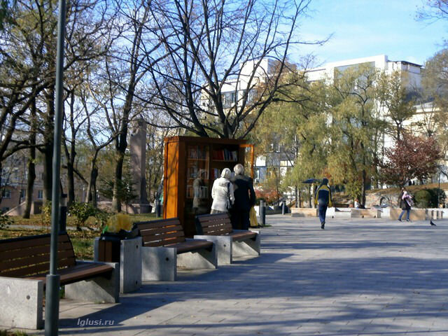 А книжный шкаф, наверное, на зиму уберут, на аллее писателей уже убрали