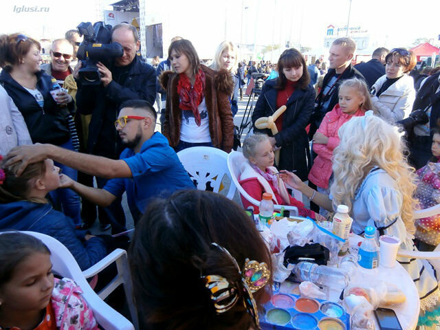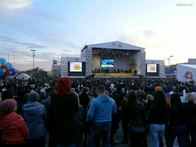 Приятно, когда вот такие городские праздники попадают на солнечные дни. Синее-синее небо, яркое солнце, музыка, яркие желто-красные листья деревьев. Здорово!