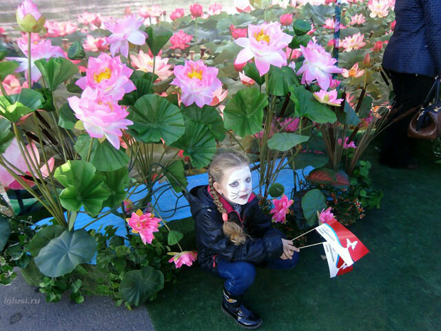 Цветы на фоне которых сфотографирована девочка это живые? я такие никогда не видела.