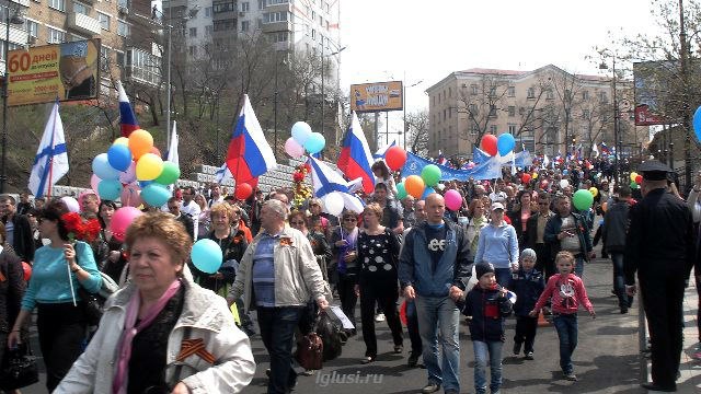 У нас городок маленький, но народ всё же ходит на демонстрации. Однако, никакое 1 мая не сравнить с главным праздником — Днём Победы!!!