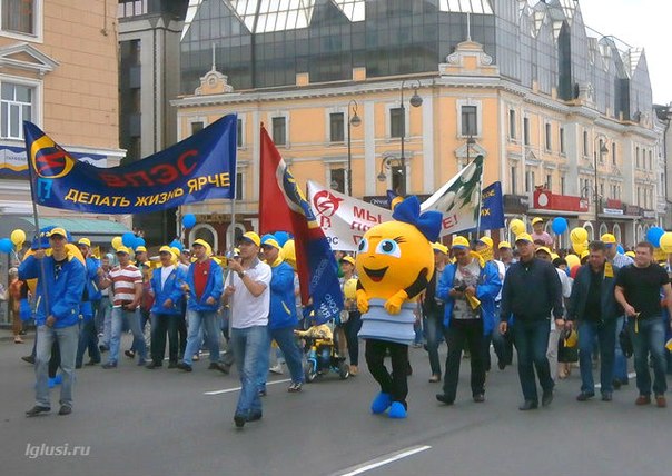 Колонны банковских работников были очень яркие, жаль все фото не поставишь, а здесь на фото альфа-банк.